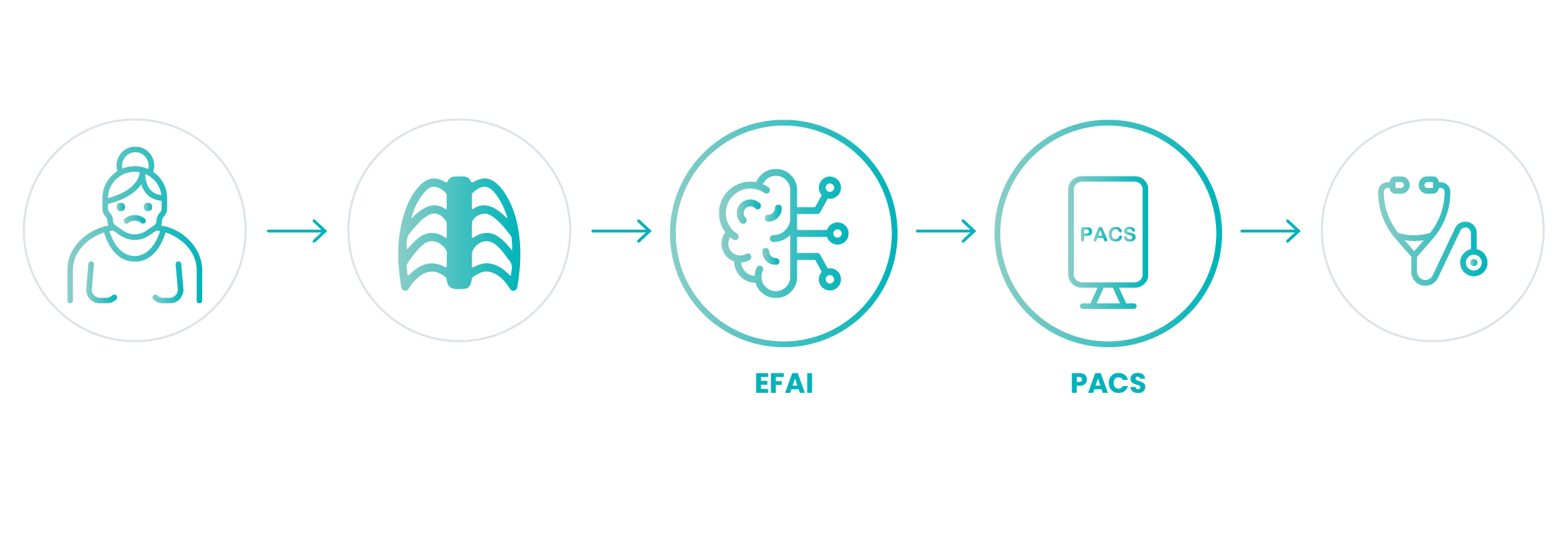 輔助醫師快速判讀胸腔X光片,自動分析該影像是否具有疑似氣胸/肋膜積水/心胸比異常/氣管內管錯位的特徵,以迅速找出具有急重症風險的病患